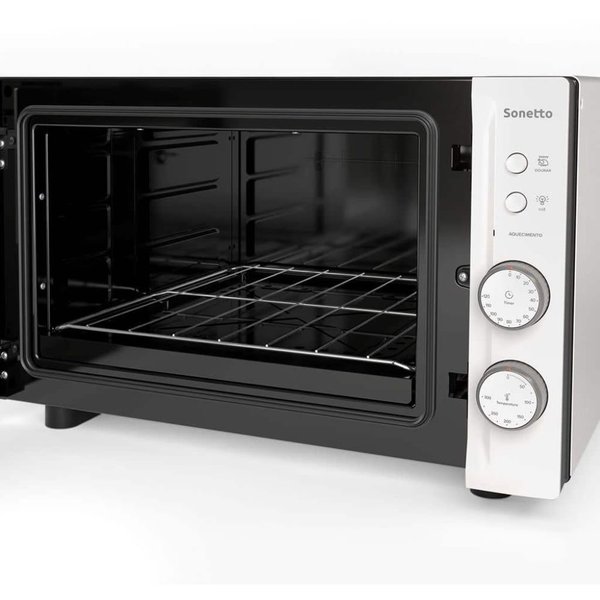 O forno elétrico Sonetto faz toda a diferença na decoração da sua cozinha. É completo, com luz interna, grill, e timer de até 120 minutos, para maior liberdade de desenvolver outras atividades enquanto o utiliza. Seu interior total clean traz mais praticidade na limpeza, além de oferecer capacidade de 44 litros, suficiente para o preparo dos mais variados assados. O Forno Sonetto ainda apresenta duplo vidro na porta e isolamento térmico total que retém o calor em seu interior gerando economia de energia e segurança para toda sua família.